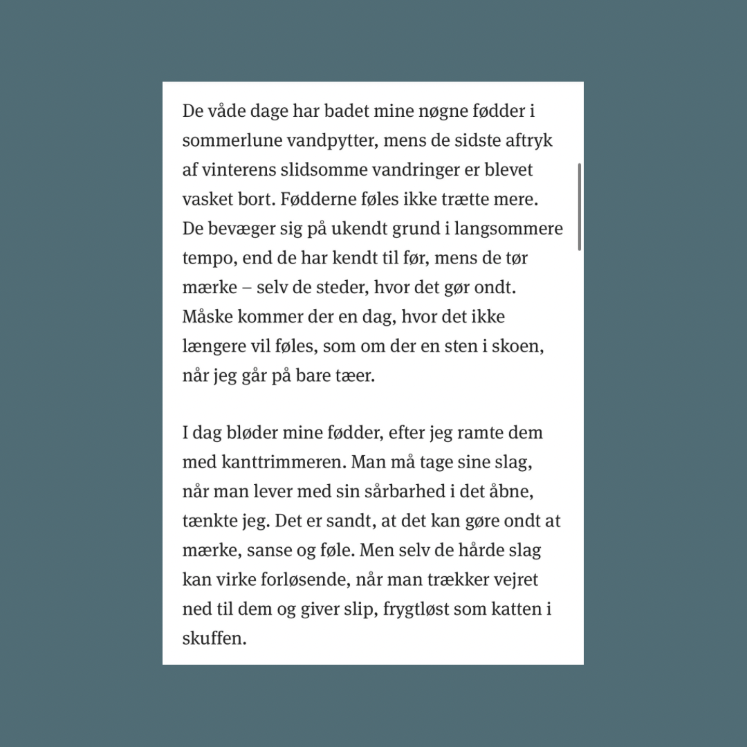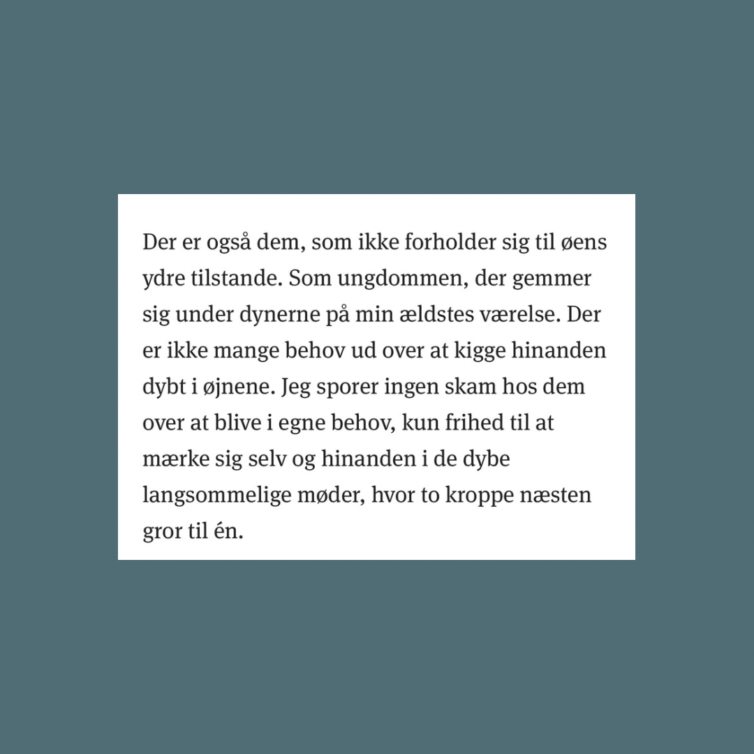Tak, Anna. For at skabe så trygt og kærligt et rum og gå på opdagelse med mig i mine indre tilstande og minde mig om mit mod og min evne til at folde vingerne ud i stormvejr.”